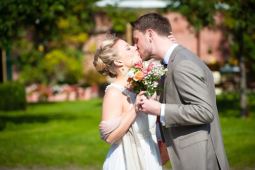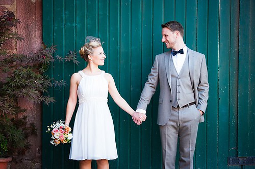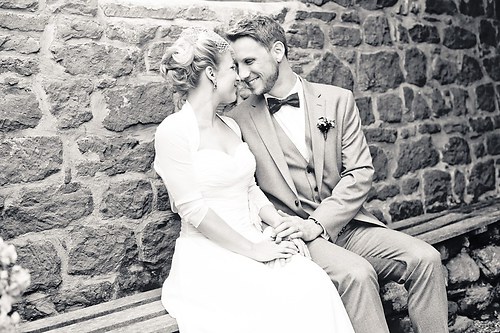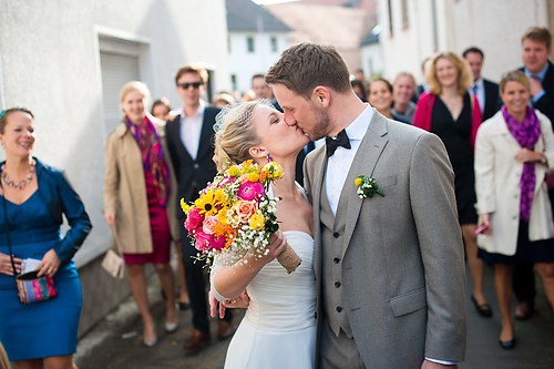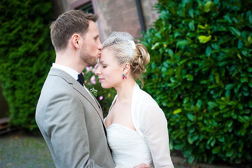 Annette und Bruno hatte ich schon beim Shooting ihrer Verlobungsbilder in Marburg kennen gelernt. Daher wusste ich, dass ich mir für die Brautpaarbilder überhaupt keine Sorgen machen musste: lachen, schmusen und posen können die beiden auch ohne meine Anleitung.