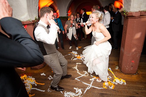Schweine und singende Franzosen. Beides konnte man auf Annette und Brunos Hochzeit auf dem Hofgut Habitzheim in der nähe von Darmstadt bestaunen. Die Schweine gehören zum Inventar. Die singenden Franzosen hingegen waren Freunde und Familie des Brautpaars. Ich war nämlich zu Gast auf meiner ersten Deutsch-Französischen Hochzeit.